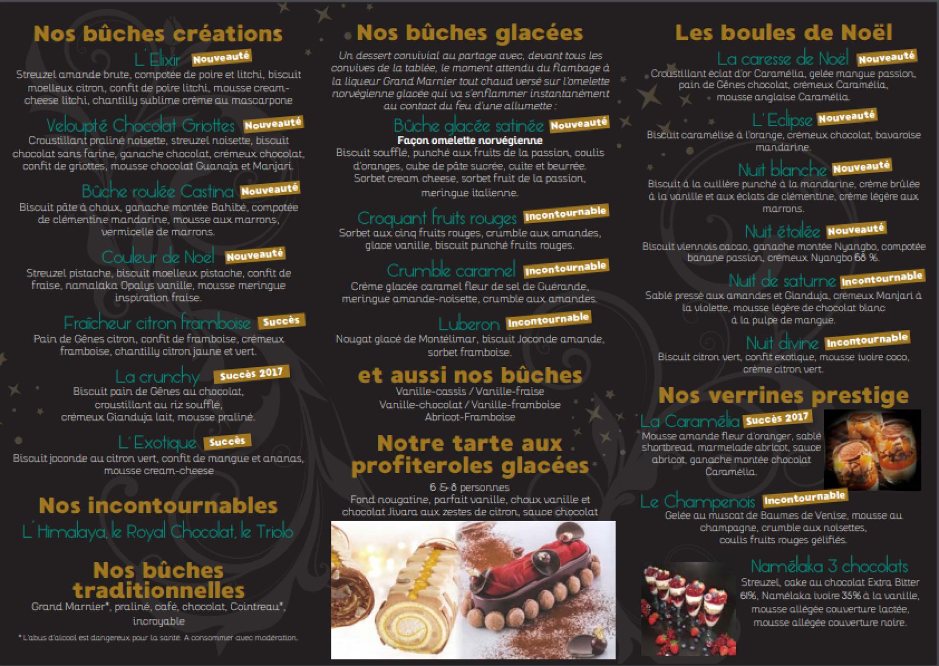Afin de régaler vos papilles pour les fêtes de fin d'année, votre artisan boulanger, pâtissier, chocolatier et glacier vous a préparer un listing digne de ce nom, nous vous laissons le découvrir puis nous vous invitons à vous rendre dans nos boutiquesà Fauville-en-Caux ou à Bretteville-du-grand-Caux pour passer vos commandes pour Noël avant le 19 décembre 2018 et pour le Nouvel An avant le 27 décembre 2018