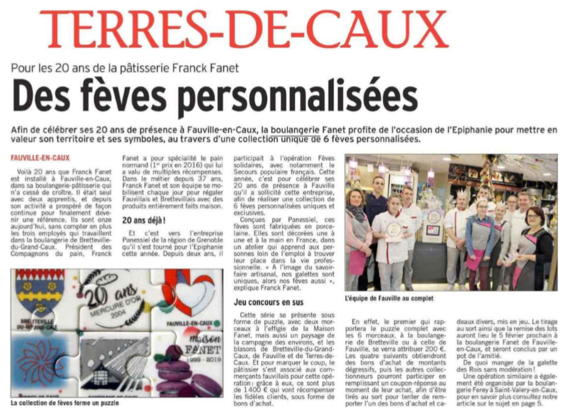 Pour les 20 ans de la pâtisserie Franck Fanet, des fèves personnalisées...