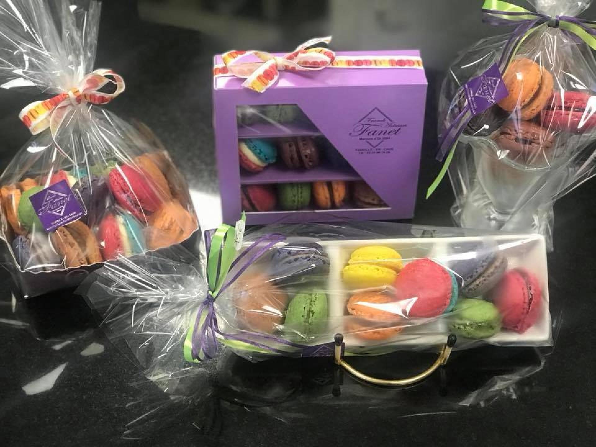 Nous présentons nos macarons sous plusieurs formes, et nous pouvons vous composer une pyramide de macarons!