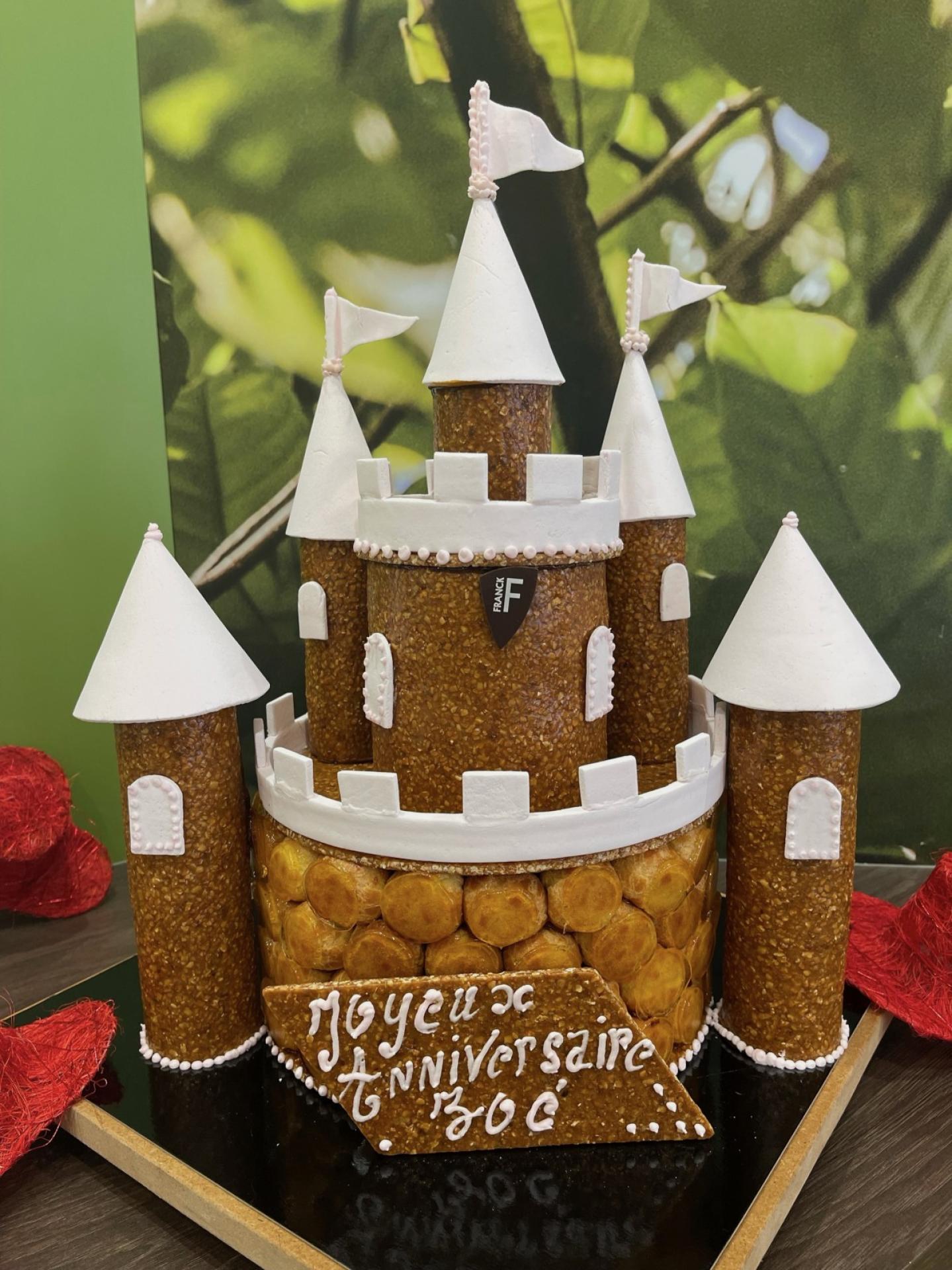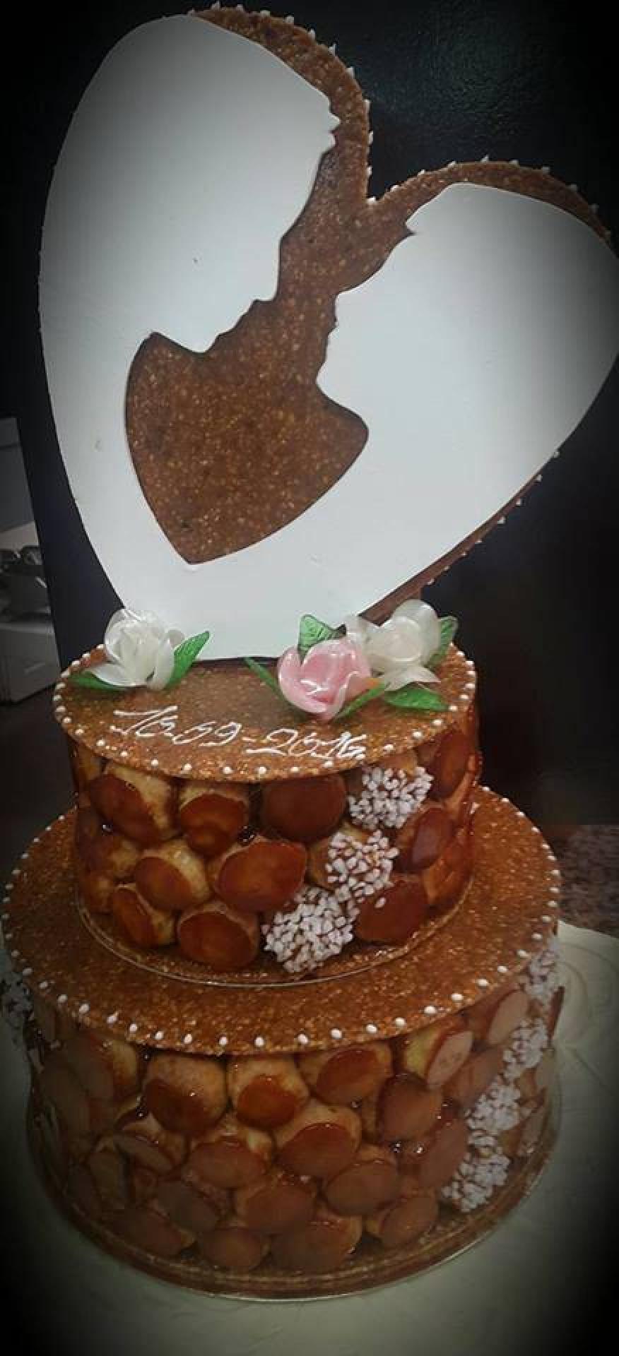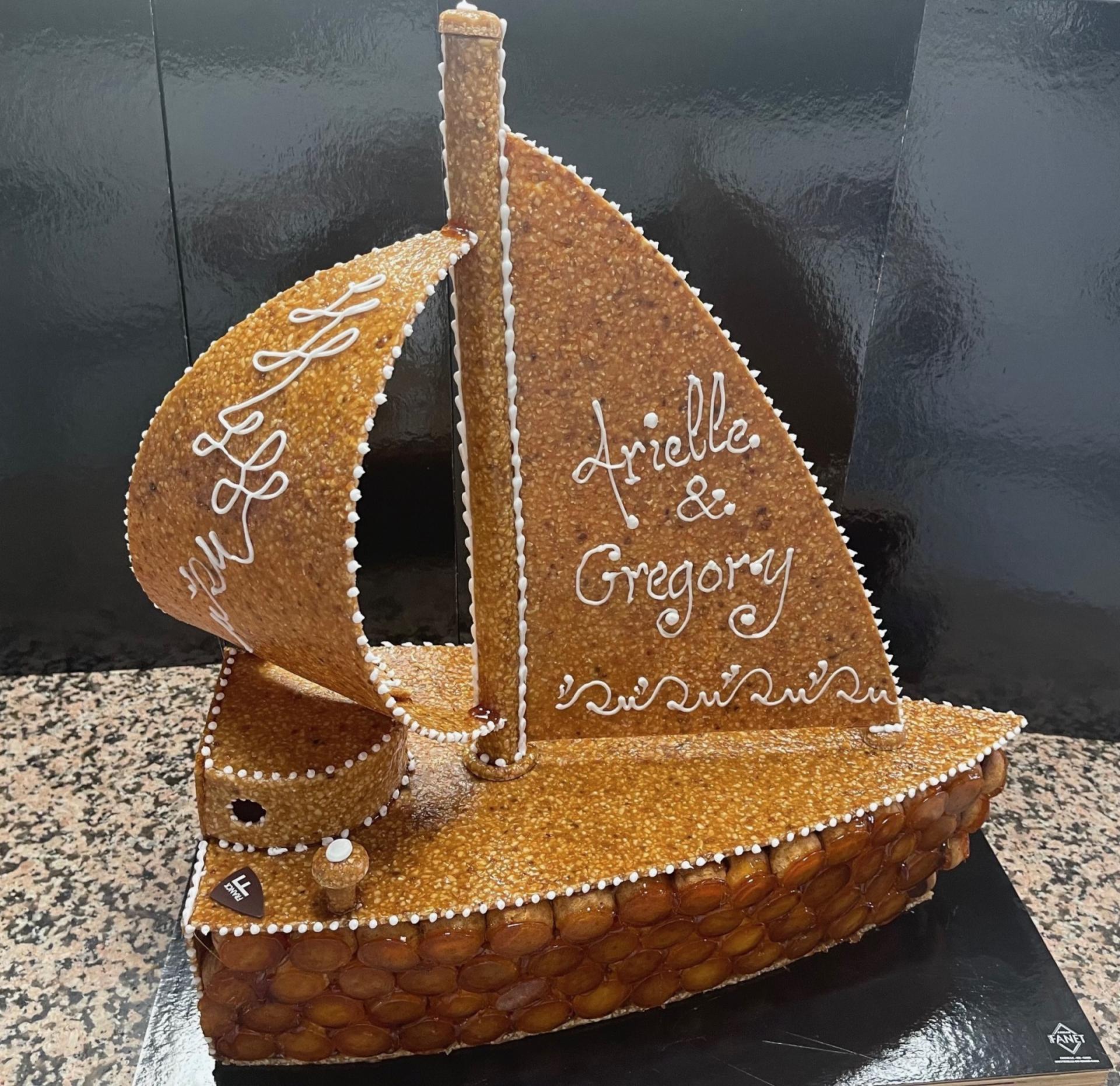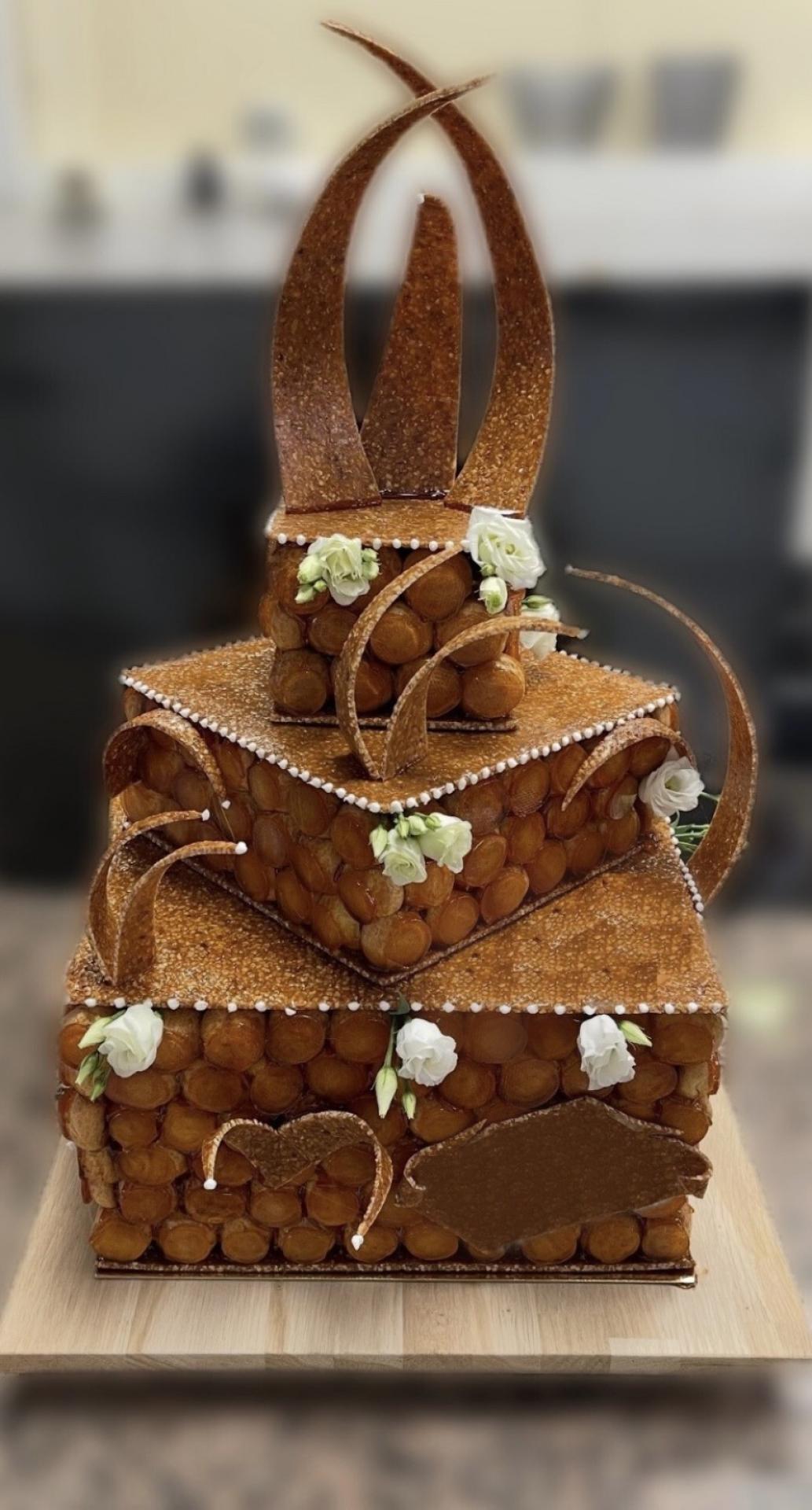 Nougatine travaillée à la main par nos soins. Nos pièces montées sont
