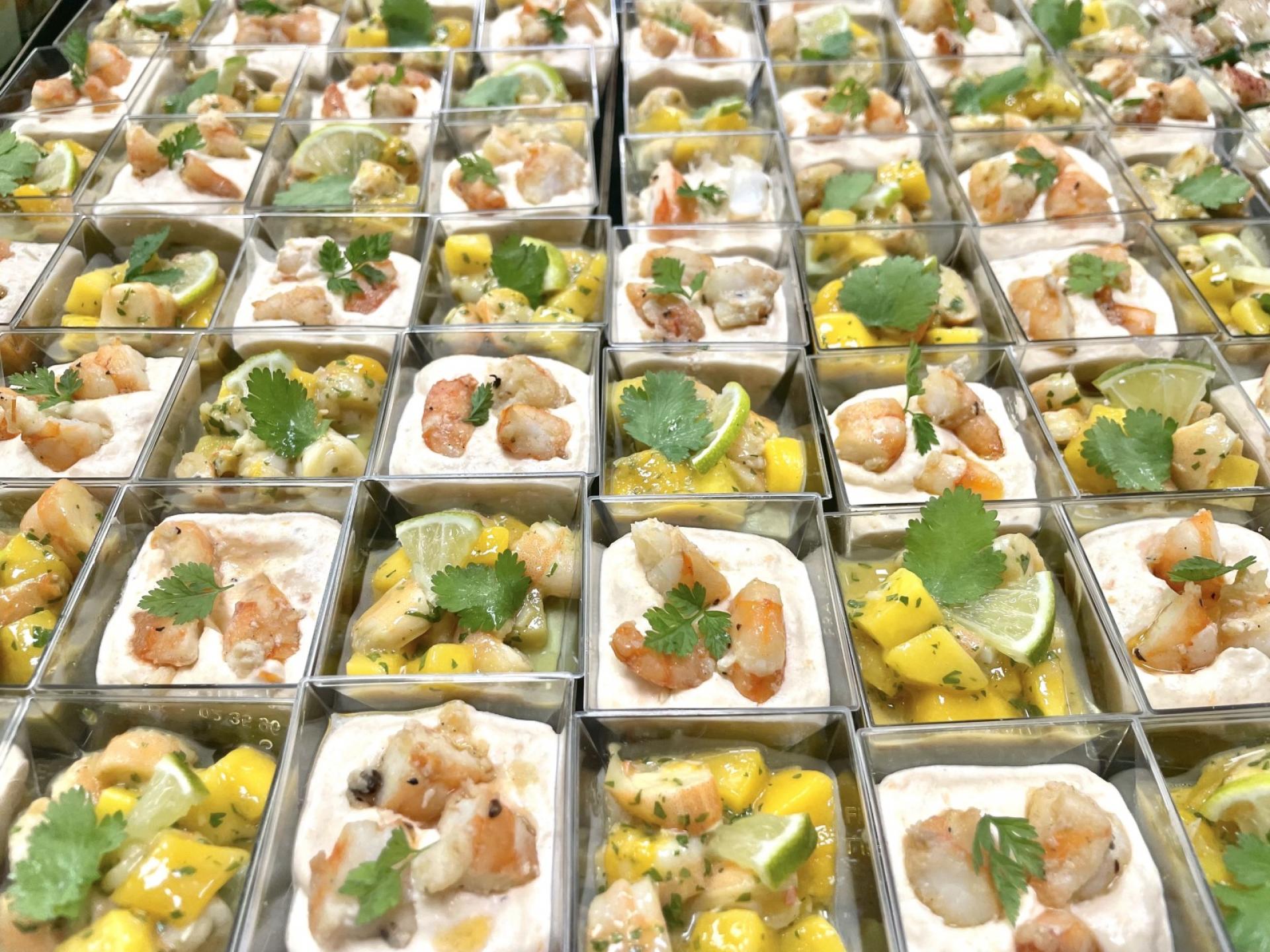– Verrine mangue, crevette et guacamole